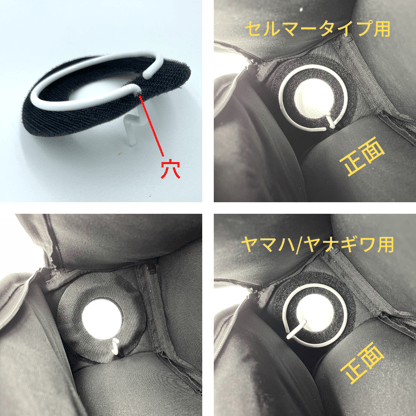 セルマータイプ用とヤマハ/ヤナギサワ用で取り付け位置が異なります(画像参照)。